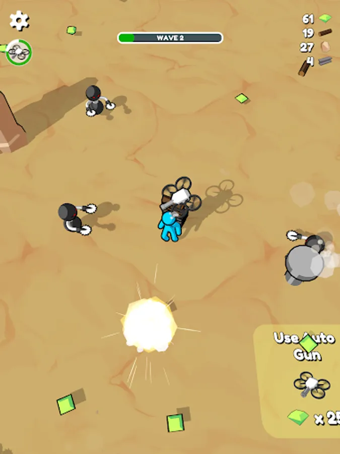 Robots are incoming! You need to gather resources to build and upgrade weapons for fight off the waves of robots.