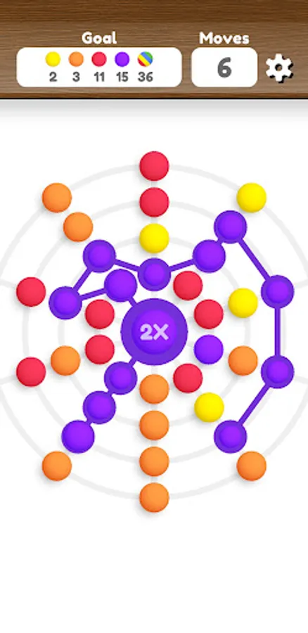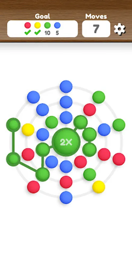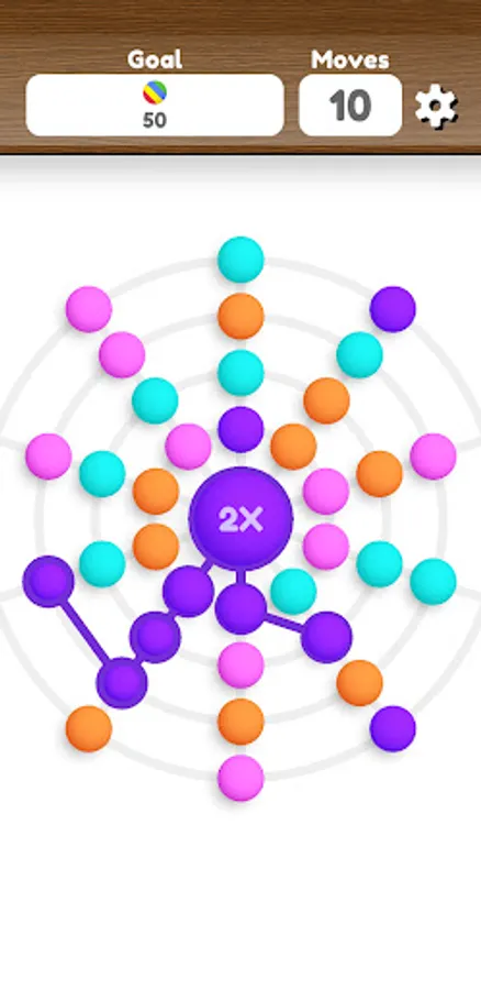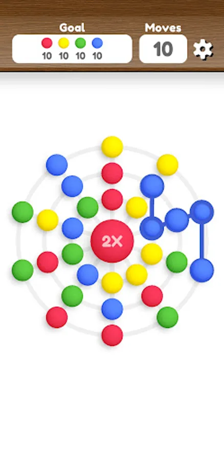 Drag to connect as many balls of the same color to score the most points. Connect with the center ball to double your score!