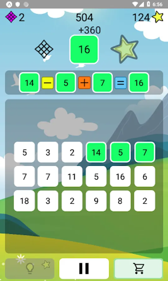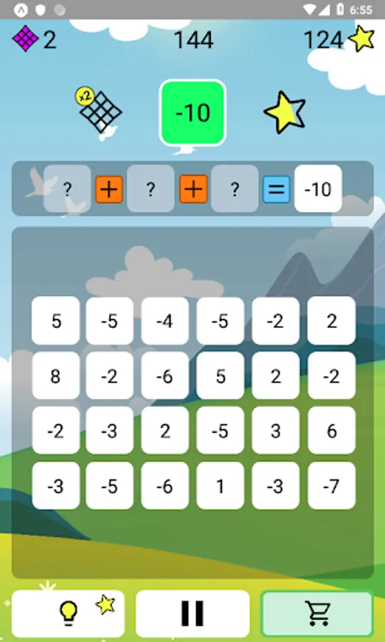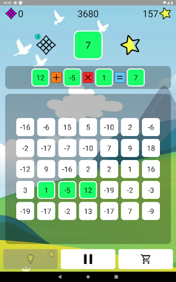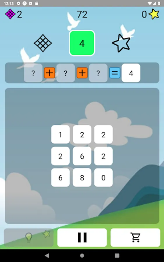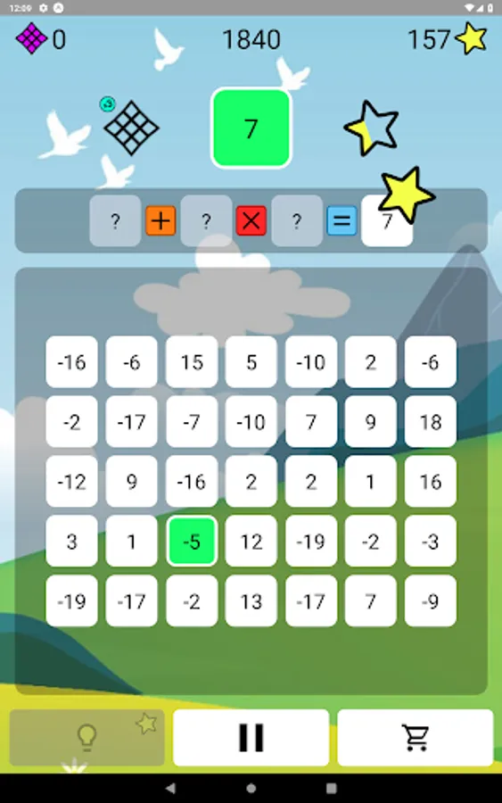 Each game consists of numbers on a board and a puzzle to fill out. Swipe to select numbers that solve the puzzle!