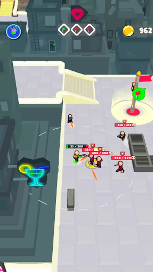 ★ Shoot, but don't let your guard down - Cyber Wars is action packed with intuitive gameplay. But remember, you can't just swing your gun around mindlessly. Different opponents and multi-level locations will make first look around, then shoot, because you never know how many enemies are lurking around the corner. All means are good on the streets, so use whatever you can find to level up and move on.
