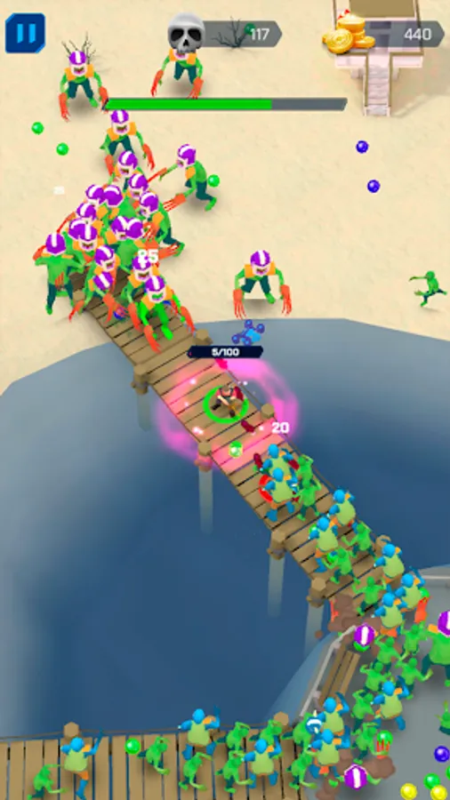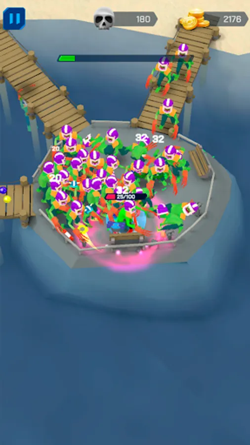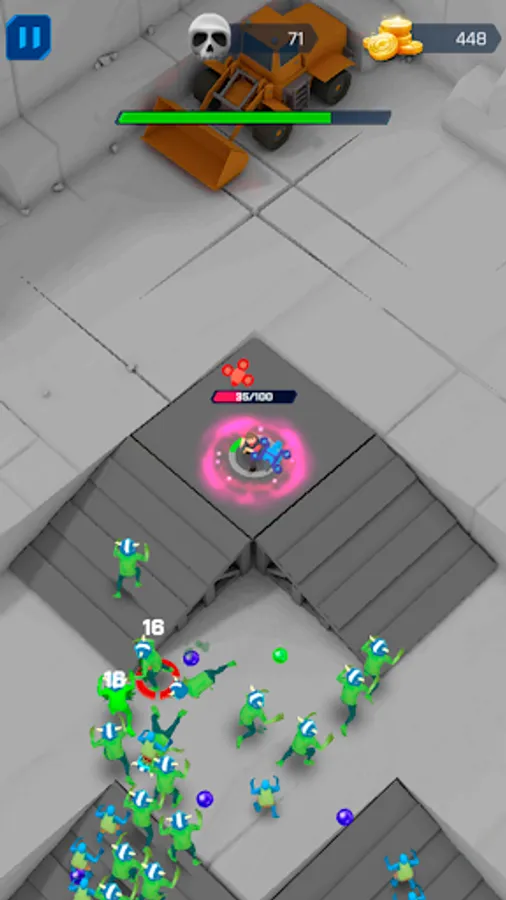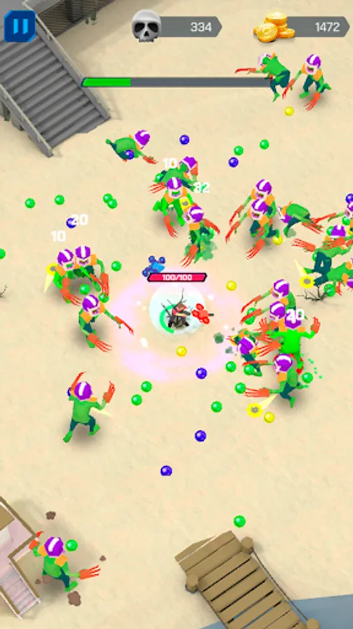 On the battle arena, you can destroy enemies by earning them gold coins and spending them to upgrade your base. In built buildings, improve your skills and weapons to be more likely to survive the next battle.