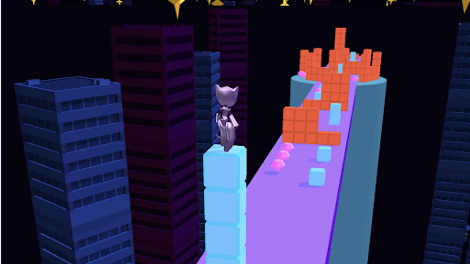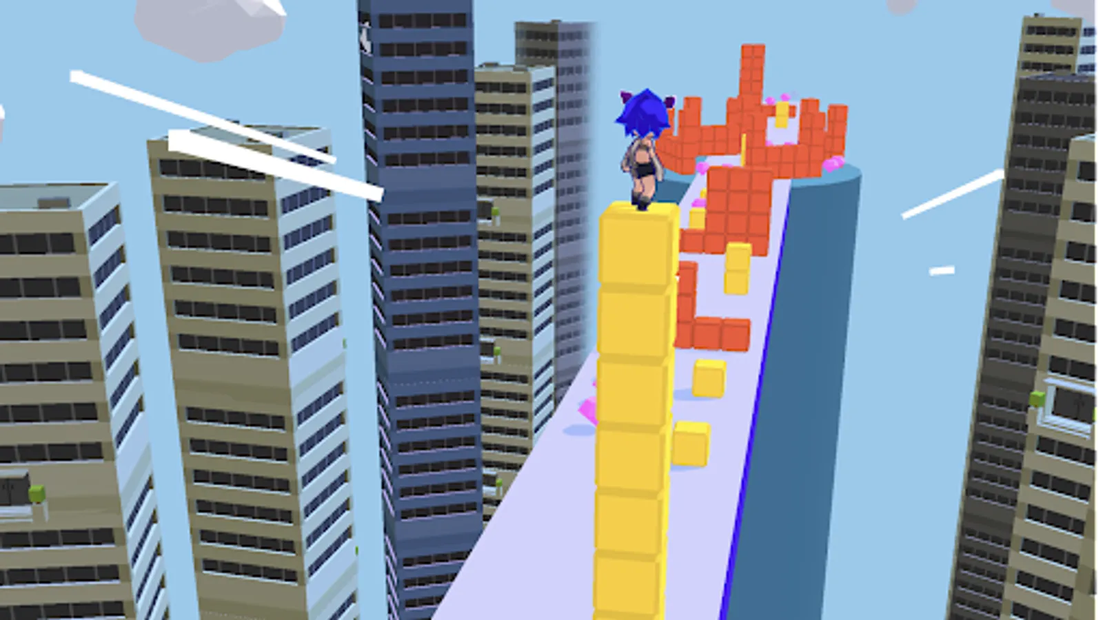 In Chill Ride, the player controls an Avatar standing on a cube that moves forward on a path made up of smaller cubes. The goal is to stack as many cubes as possible without hitting obstacles. As the player progresses, the path becomes more challenging, and new obstacles are introduced.
