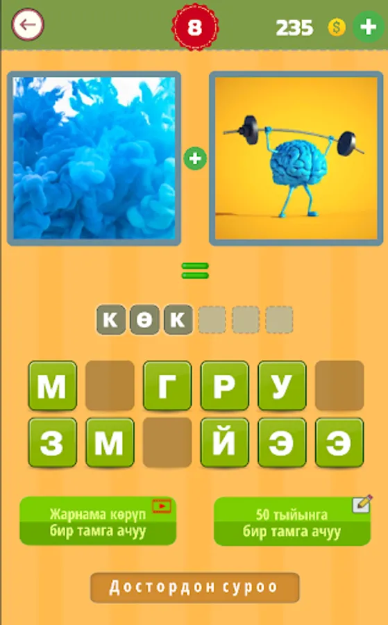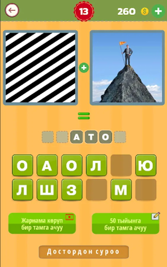 2 Picture 1 Word 2022 is a new Kyrgyz game. The premise of the game is that you will be shown 2 pictures. Look at the pictures and you have to find the hidden word. There is no time limit. You can sit and play with your friends and family. We wish you success!