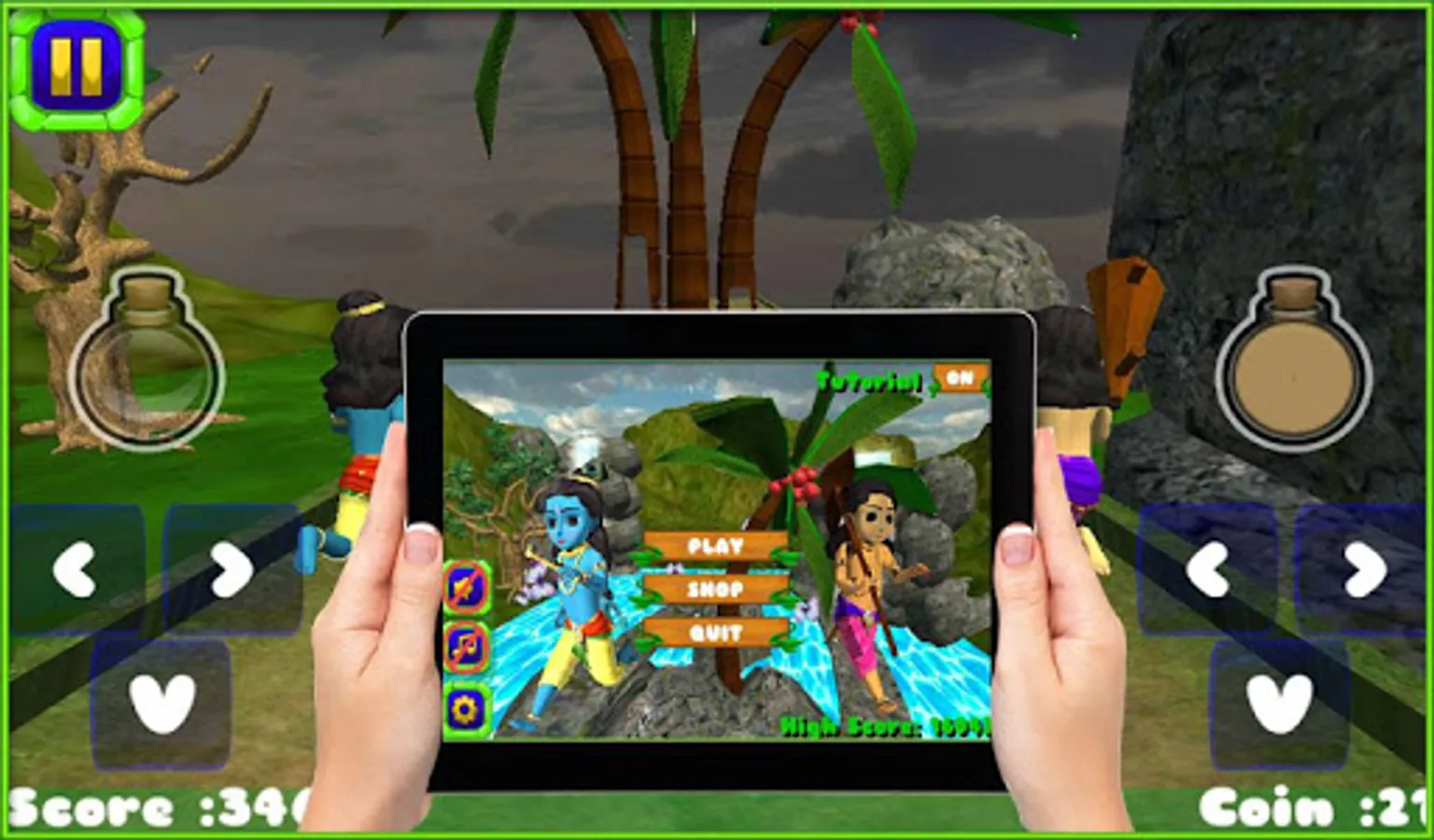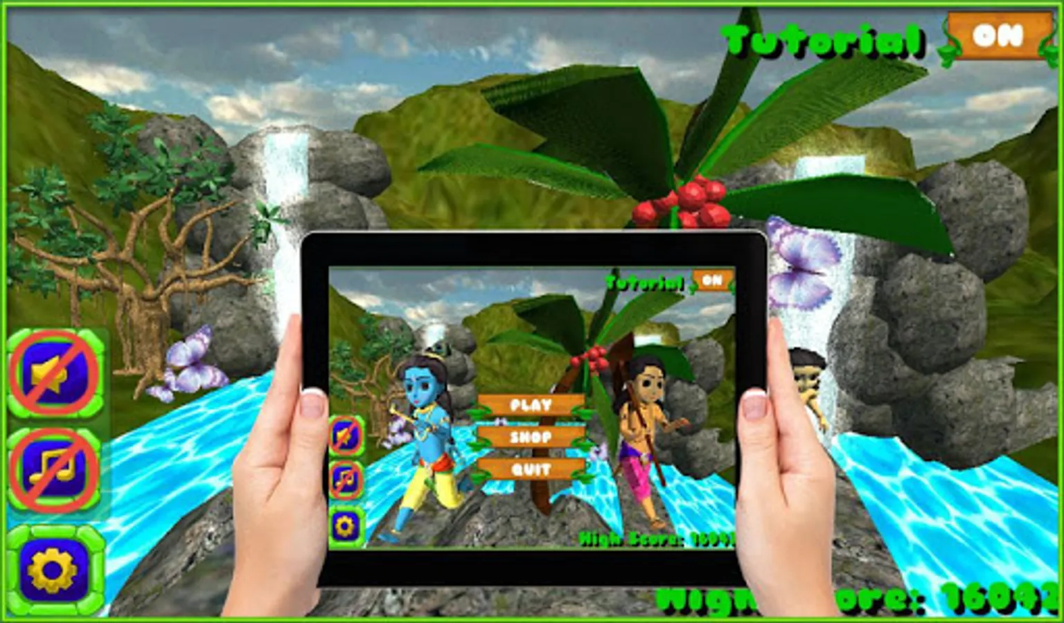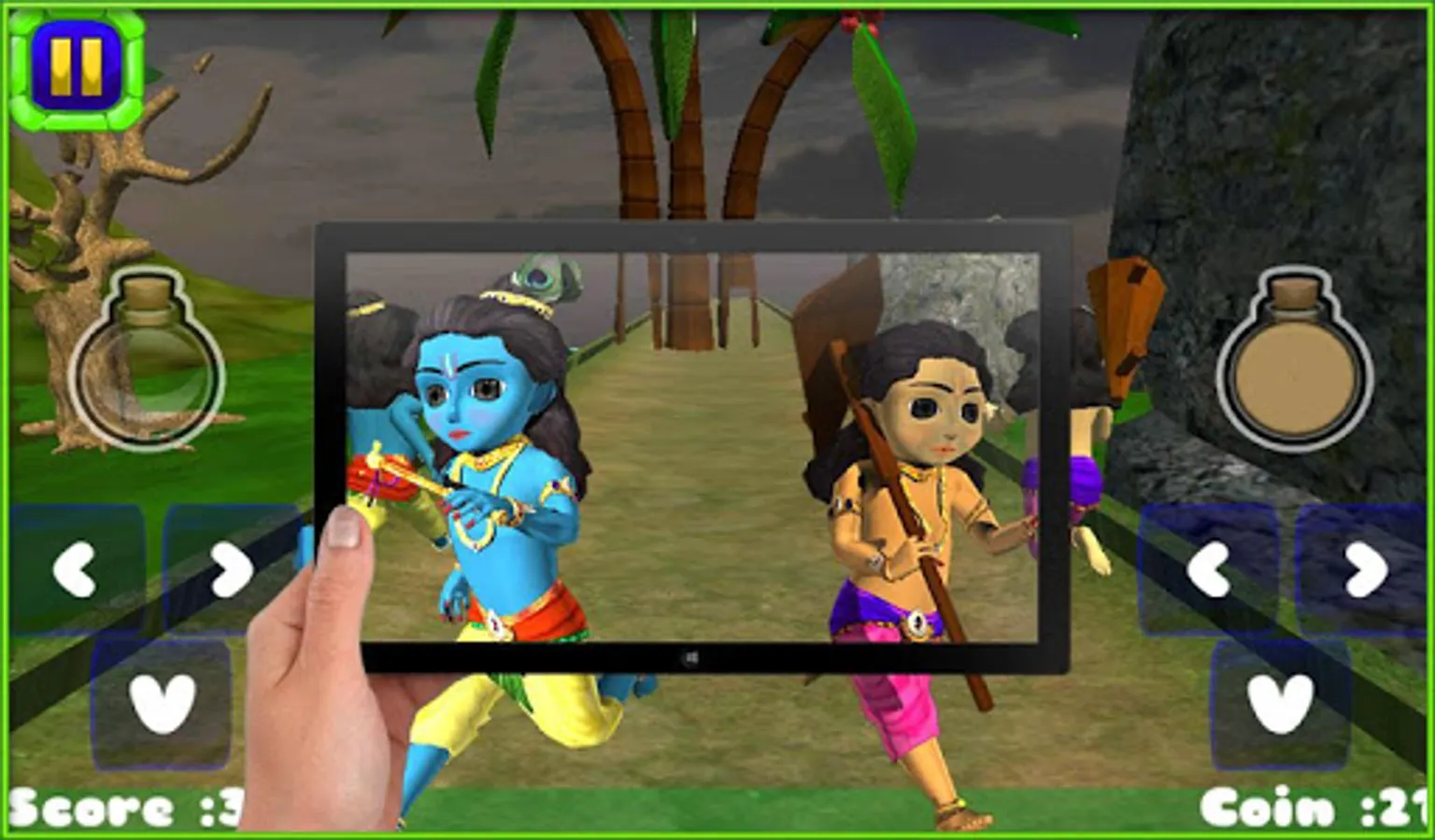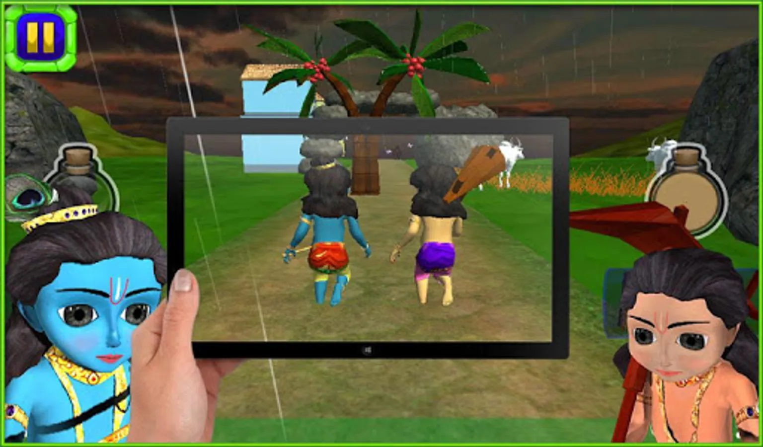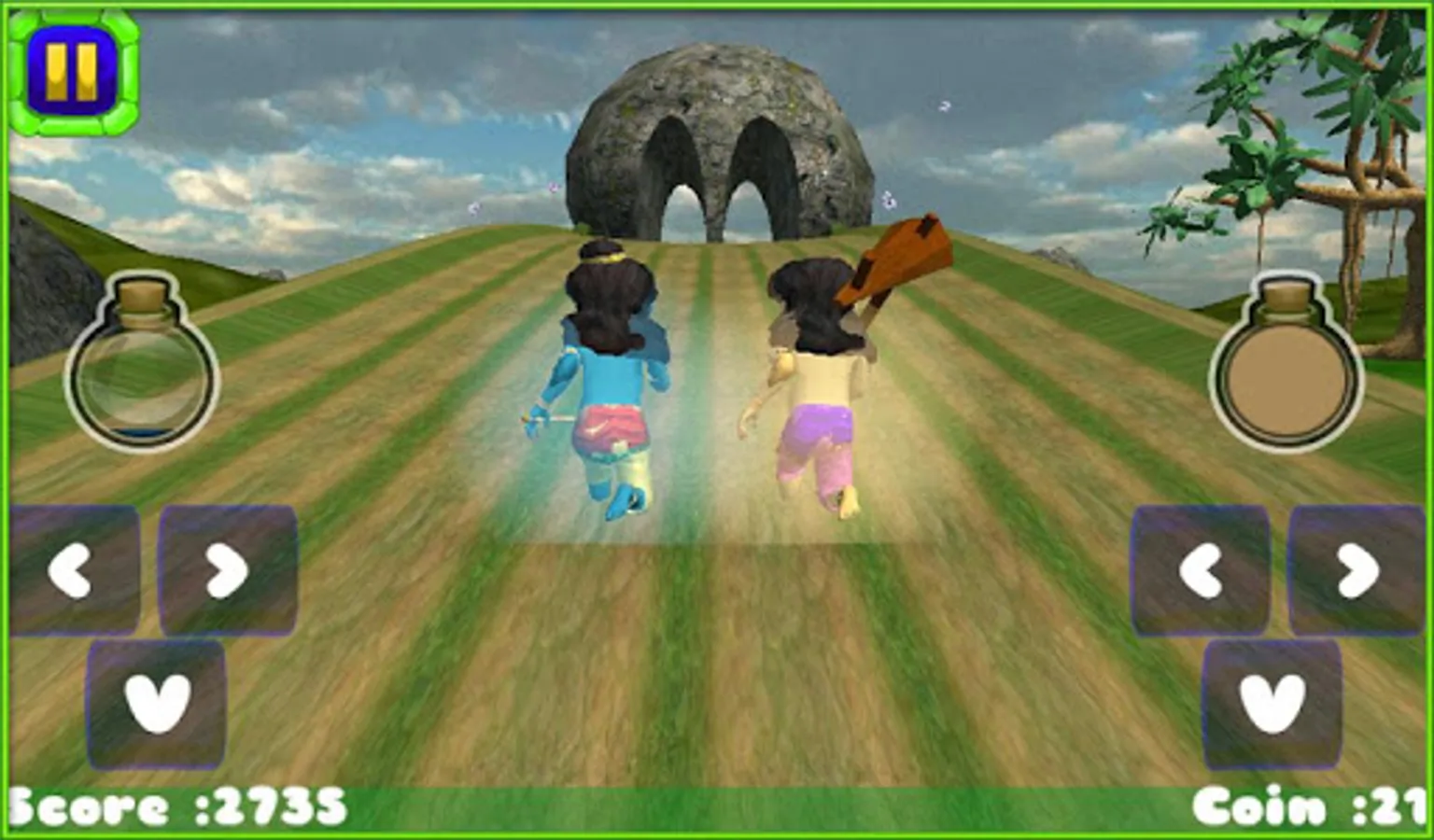 Little brothers Krishna and Balarama 3D running game especially for kids and game, Beautiful game scene and natural environment with water falls, rainfalls, flying butterflies and goshala"( cows place ) scenes on the game play It's Infinite runner Game. You have to tackle all obstacles while running on the track. Try to collect coins to increase your power and boost power to tackle with demons. So you must show your abilities to Control the Krishna & Balaam in the Game Play. Enjoy the adventure run through exotic locations in this action packed runner game.