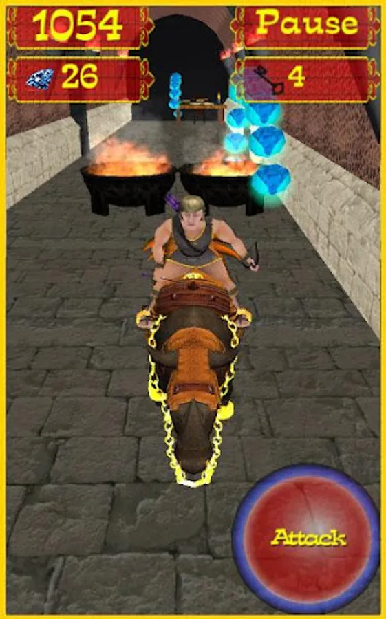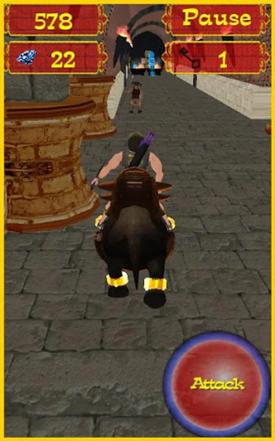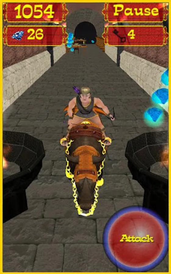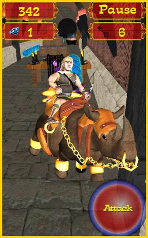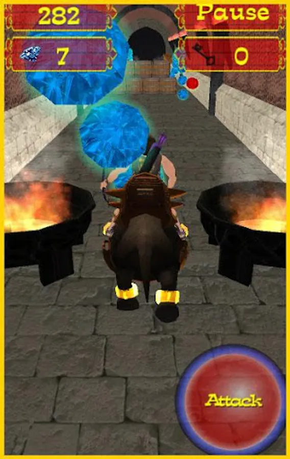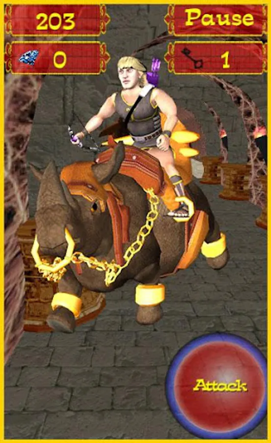 Take the control of your Rhino in this infinite racing runner, while jumping and challenging on the way through the dungeon. As a dungeon hunter, you have to tackle all obstacles and fires while running and shooting with arrows throw the dungeon on a fast Rhino Ride. Try to collect gems to increase your score, collect colored magnets to speed up your Rhino. So you must show your dungeon hunter abilities to kill these Enemies. You have some chances to continue by using 'save me option' if you simply die. We also allow you to buy extra 'save me' option in the game. You are able to kill Enemies in the game.