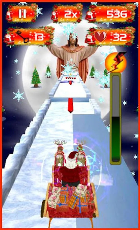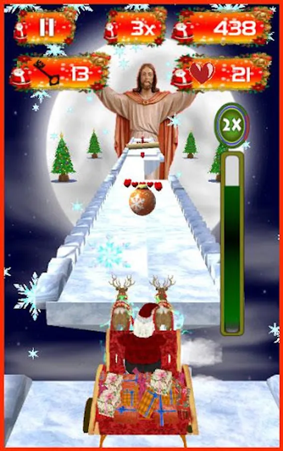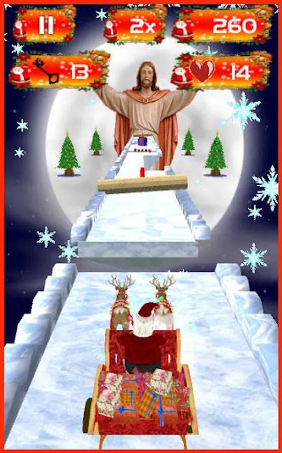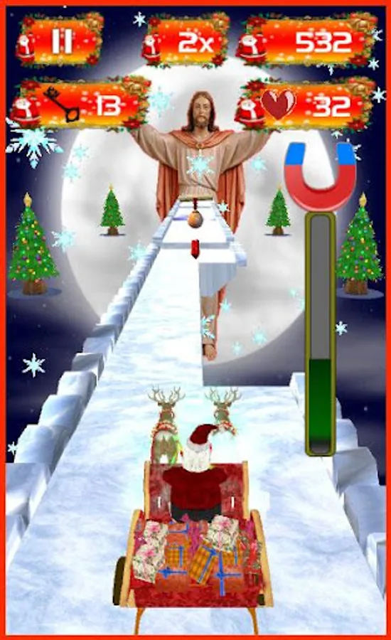 Santa Christmas 3D Ride game you have to ride with your fabulous Santa sleigh along many different obstacles like woods. Collect as many gifts and hearts as possible from the beautiful game scene with snow falls. Help Santa to jump all obstacles. It's all about fun, snow, gifts and love. Make this Christmas and new year holidays awesome with this Christmas Santa Clause 3D ride.