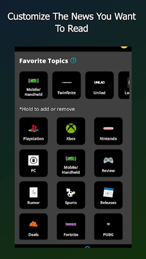 - Explore section to create your own feed section, you can fully customized your video game news.