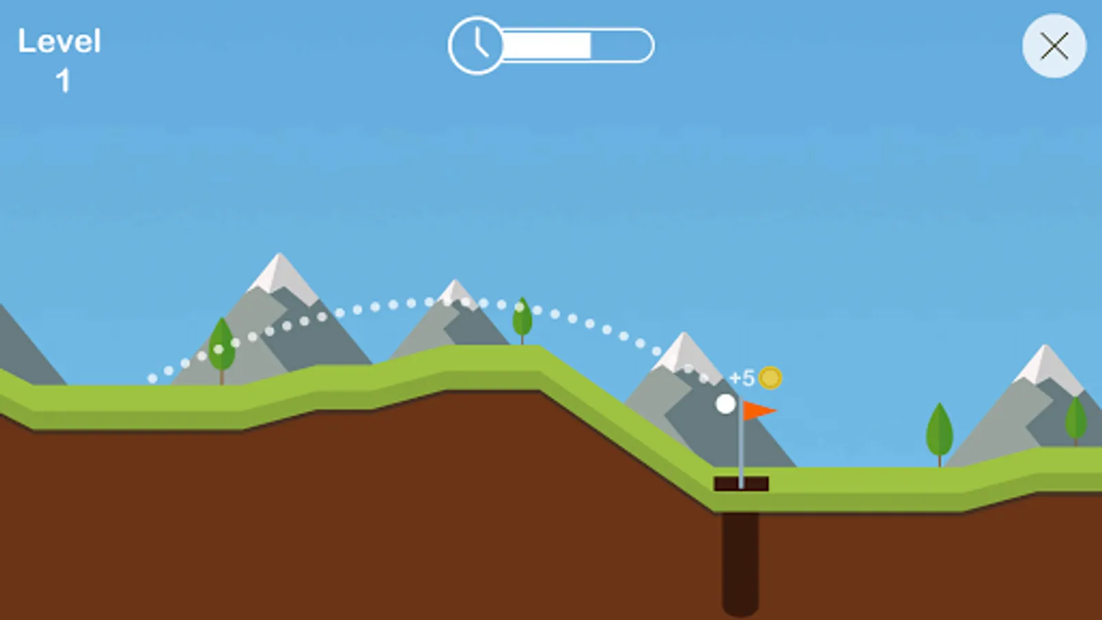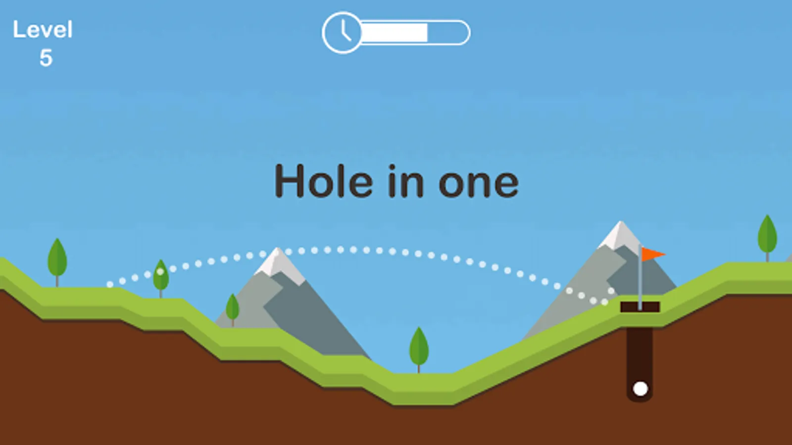 - All levels can be cleared in one shot by putting ball in hole