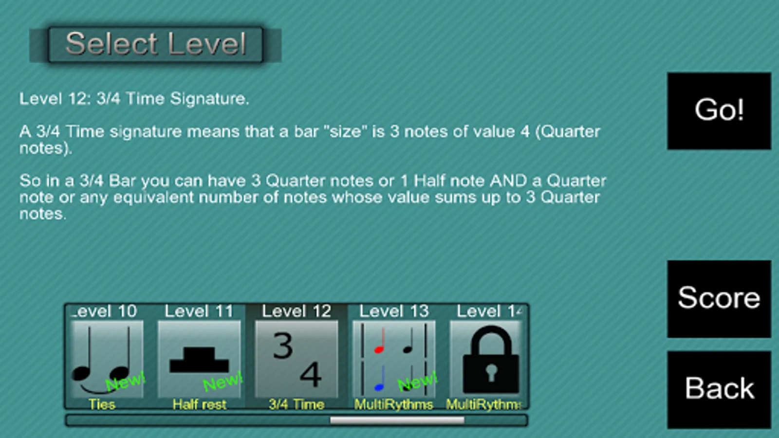 • Fun rhythm game experience for practicing the exercises that will teach you how to read music.