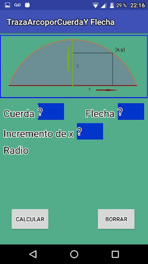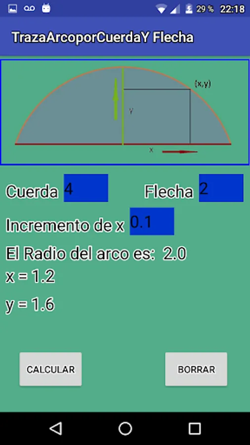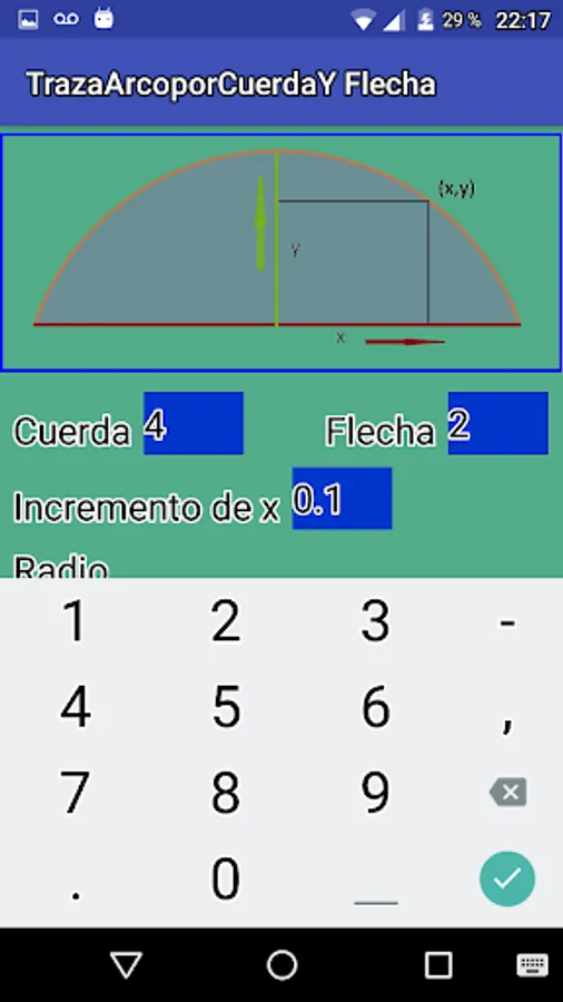 This tool provides the coordinates (x, y) relative to the intercession point of the string and the arrow of an arch that contains them.