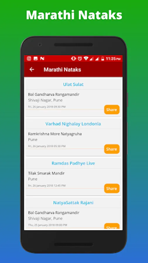 ✅ Get daily schedule of Marathi, Hindi Nataks/Dramas around Pune, Pimpri Chinchwad city.