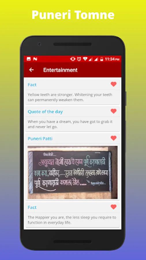 ✅ Daily notification of the Quotes (Life, Success, Inspirational, Love, Funny, Positive, Friendship etc), Jokes (Santa Banta, Wife, Puneri Tommne etc), Facts of life.