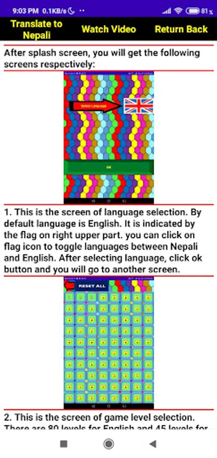 3. There are 80 levels of 25 words each in English game and 45 level of 25 words each in Nepali game.