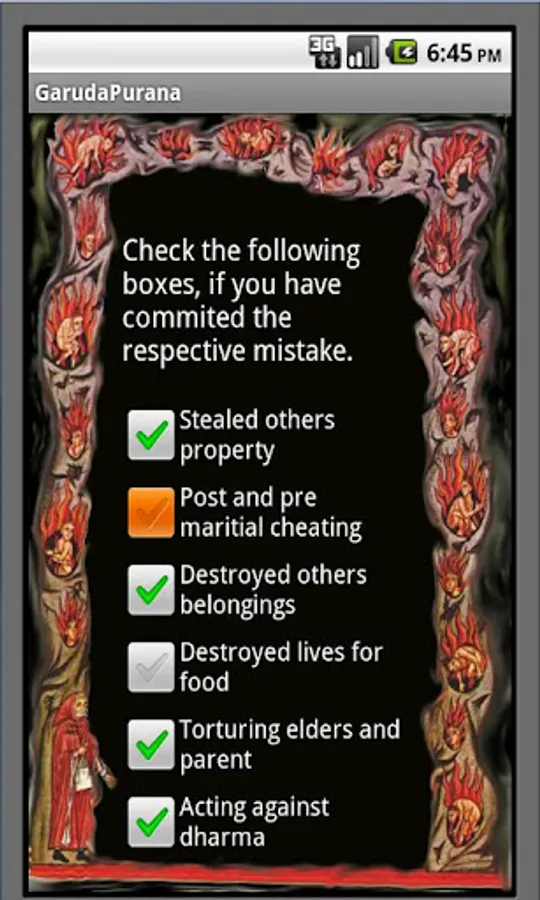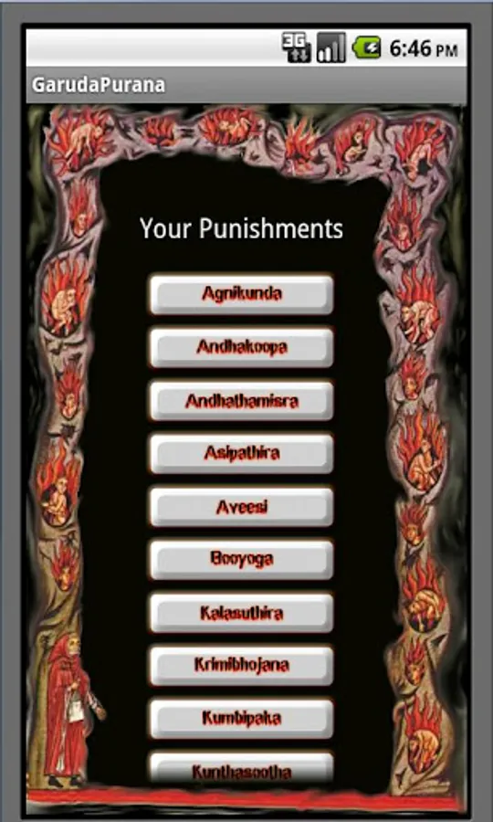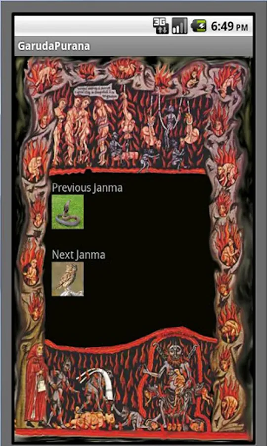 Displays previous janma, next janma and all the punishments that you deserve for the mistakes you have committed.