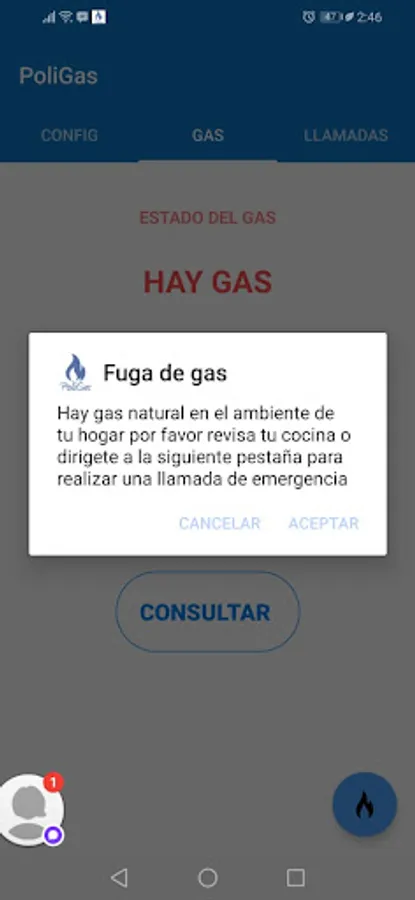 looking for natural gas leaks using a device that is in the kitchen of the home or predetermined place.