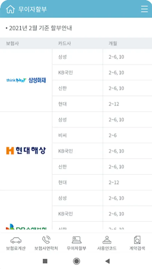 - 그외 무이자할부 정보 및 보험사 연락처등