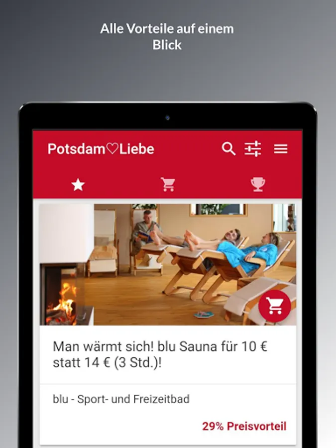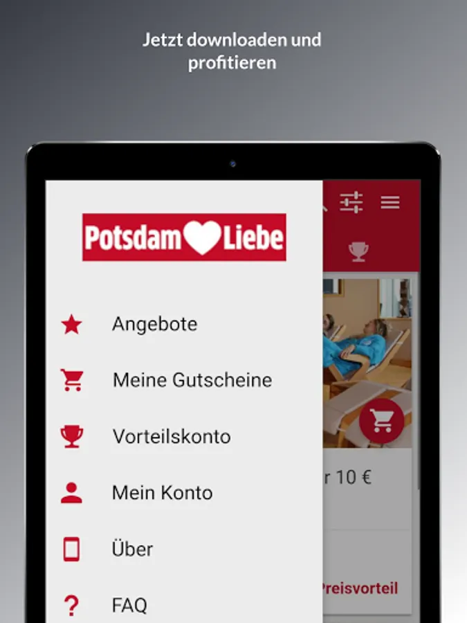 The Potsdam ♥ Liebe app shows you all offers clearly presented - whether on the go or at home. So you can be sure that you won't miss any offers. Book your vouchers conveniently and easily on the move or from the sofa at home.