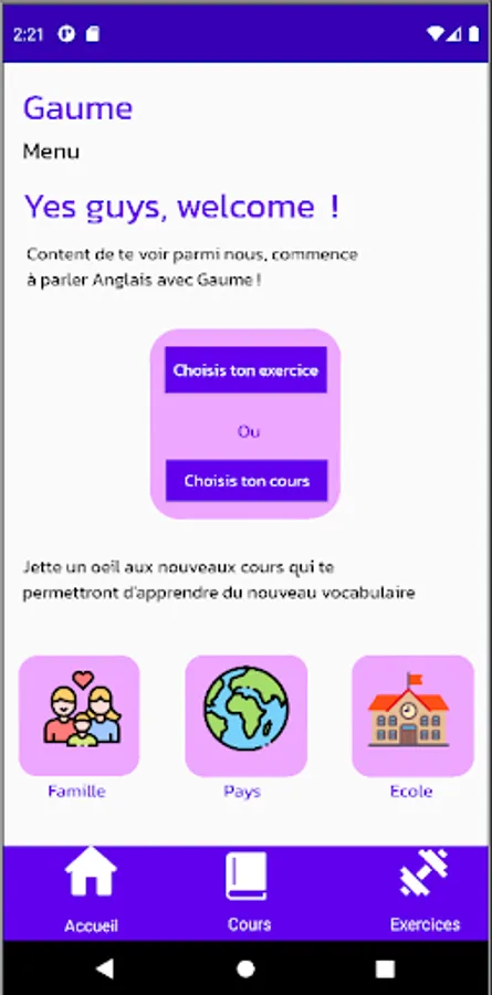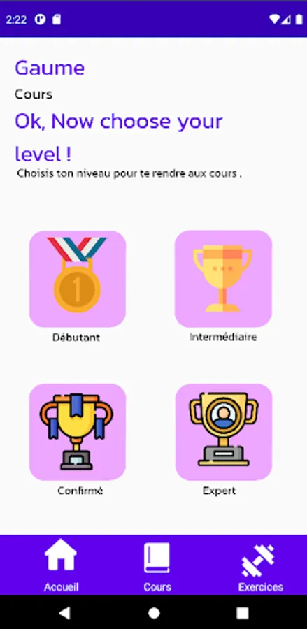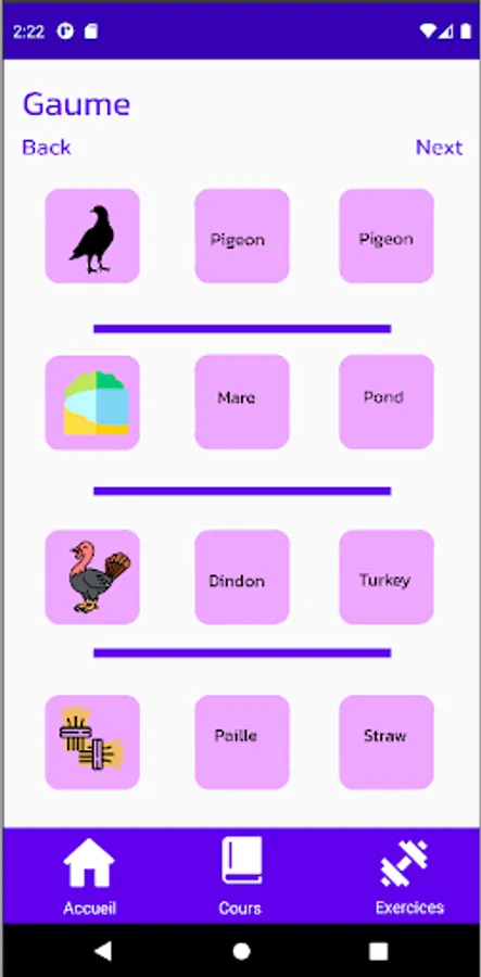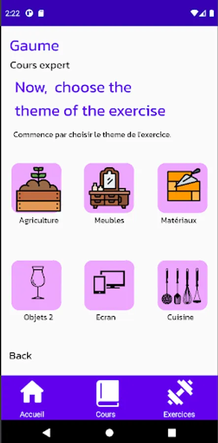 Gaume also allows you to practice with different exercises in the form of multiple choice questions.