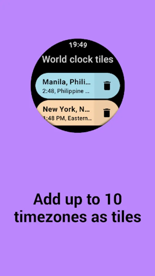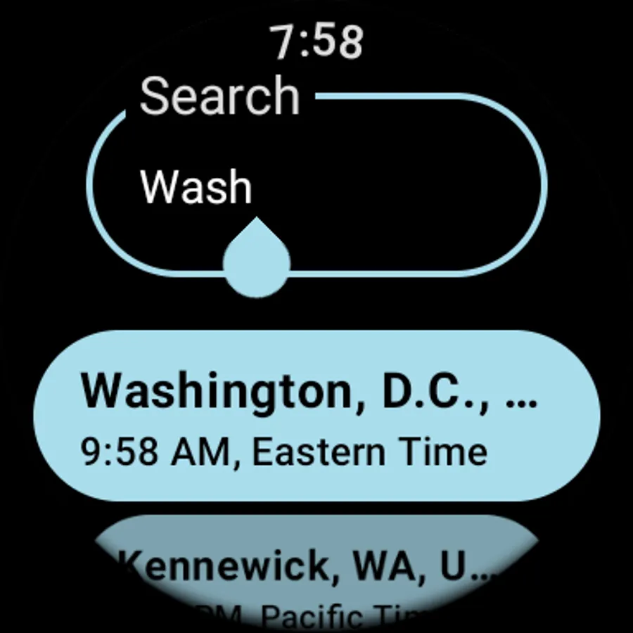 A simple world clock app for Wear OS watches that allows you to add your favorite city's time zone to your watch.