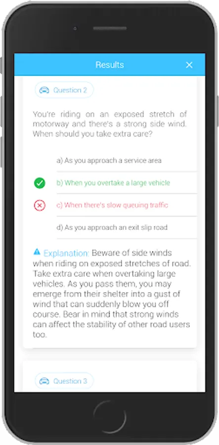Our app features a comprehensive set of practice questions, mock tests, and detailed explanations of the driving theory concepts you'll need to know. You'll gain expertise in critical areas such as road signs, traffic regulations, emergency procedures, and hazard perception.