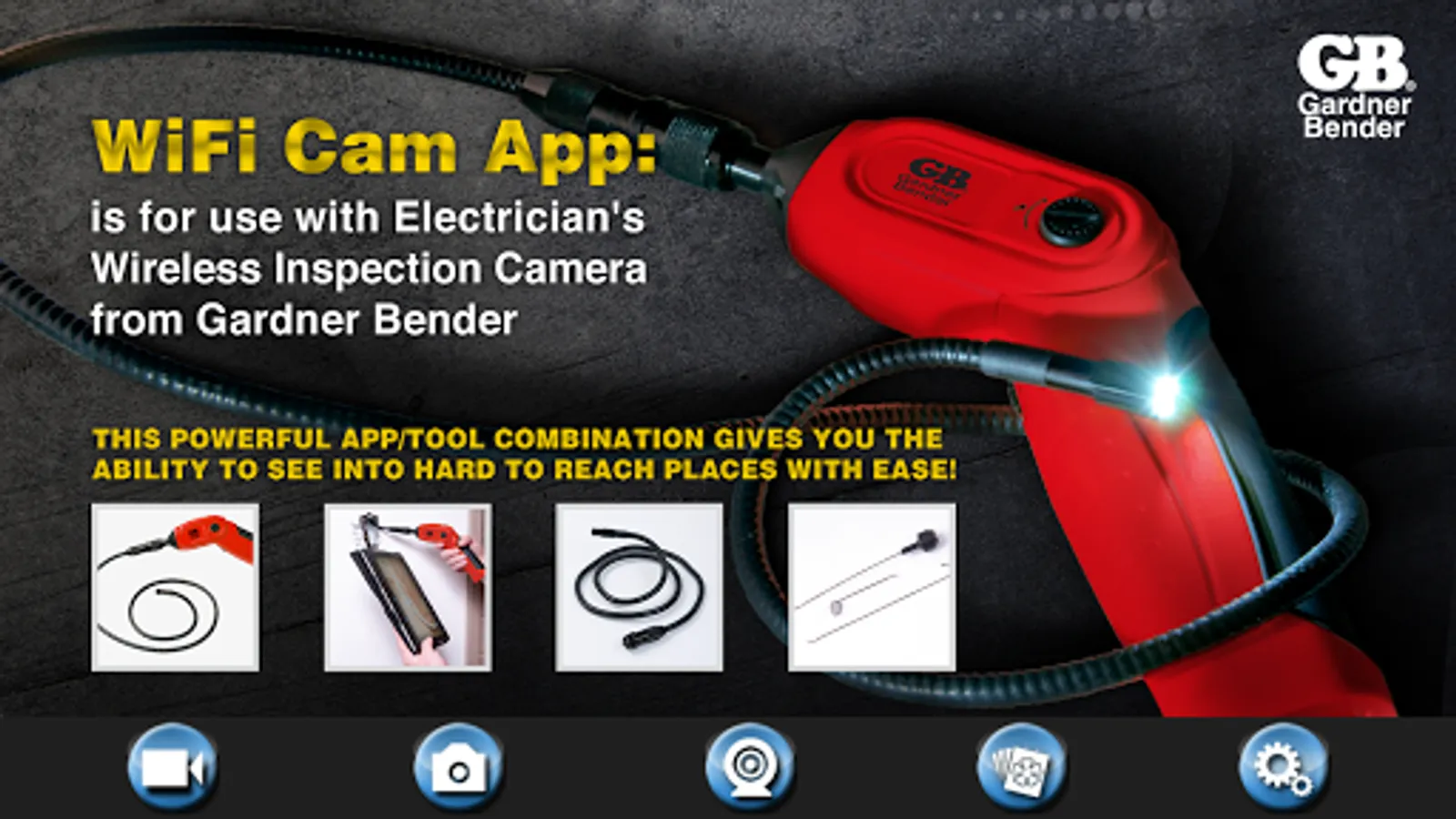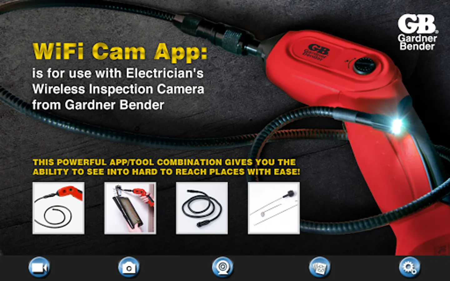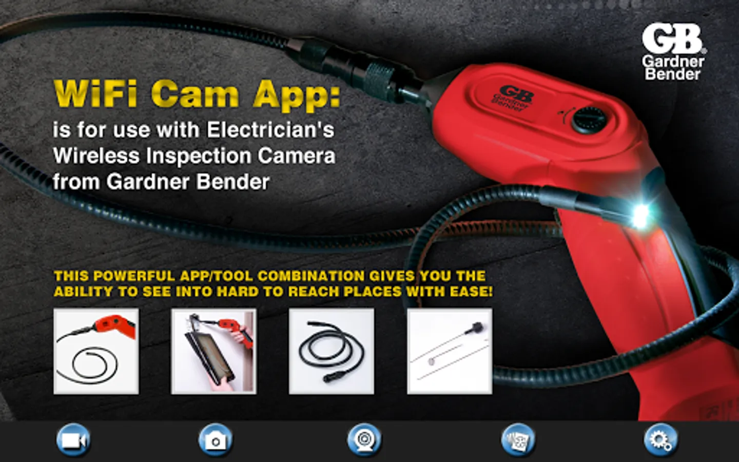 Wifi Cam app is for use with the Gardner Bender WIC-100 Wireless Inspection Camera. It enables your Android device to be the screen for the camera while inspecting pipes, air ducts and other hard to reach places.