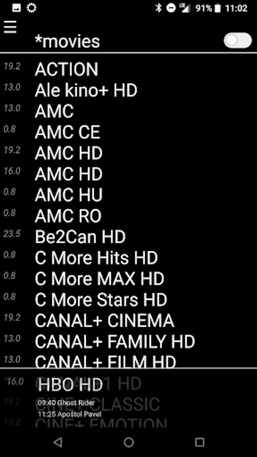 * Search channels by name, satellite position or bouquet name (using * prefix for bouquets).