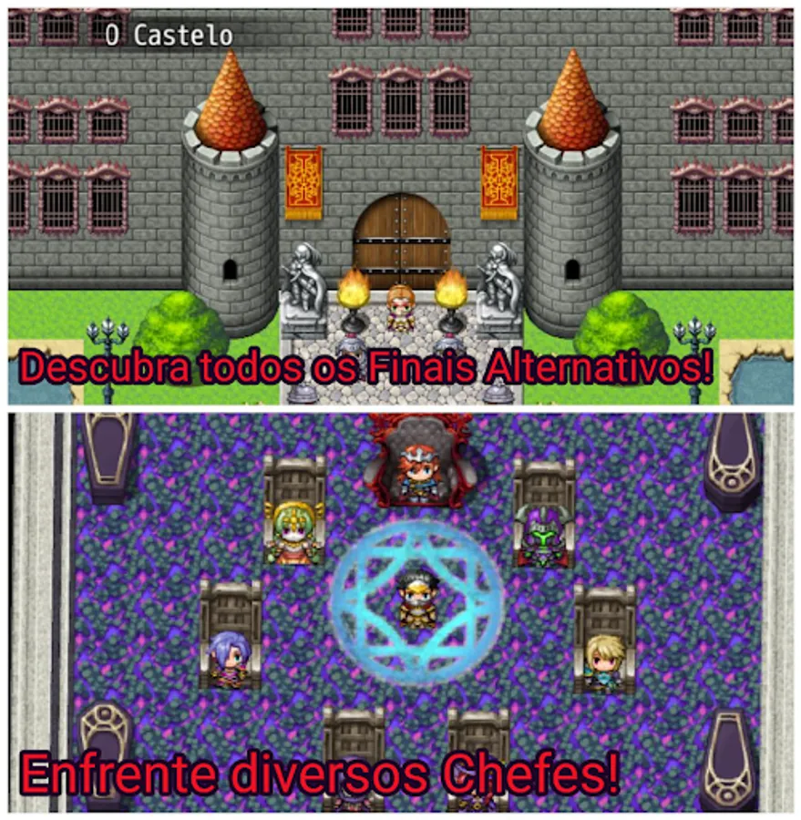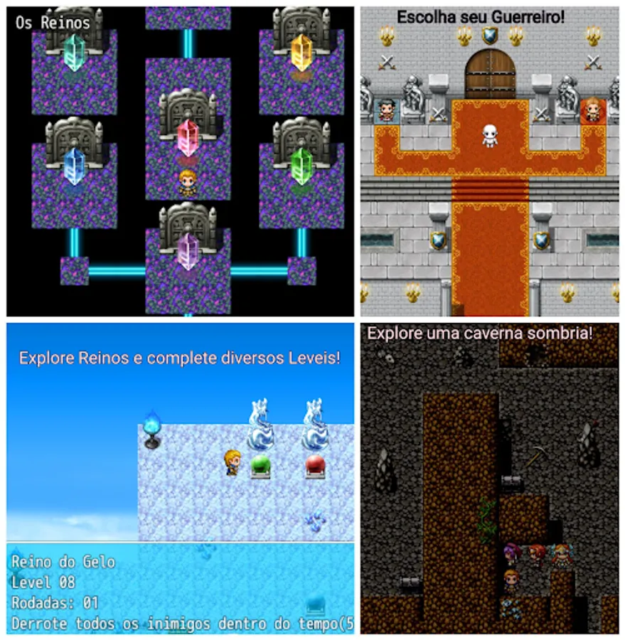 This game offers three alternative endings, one of which is secret. Choose your Warrior, level up, defeat different bosses and enemies, explore a huge World and different Kingdoms, build a boat and explore a huge Ocean, perform extra missions around the World, complete several levels within Kingdoms, buy houses, assemble your team, etc. This game has more than 100 levels.
