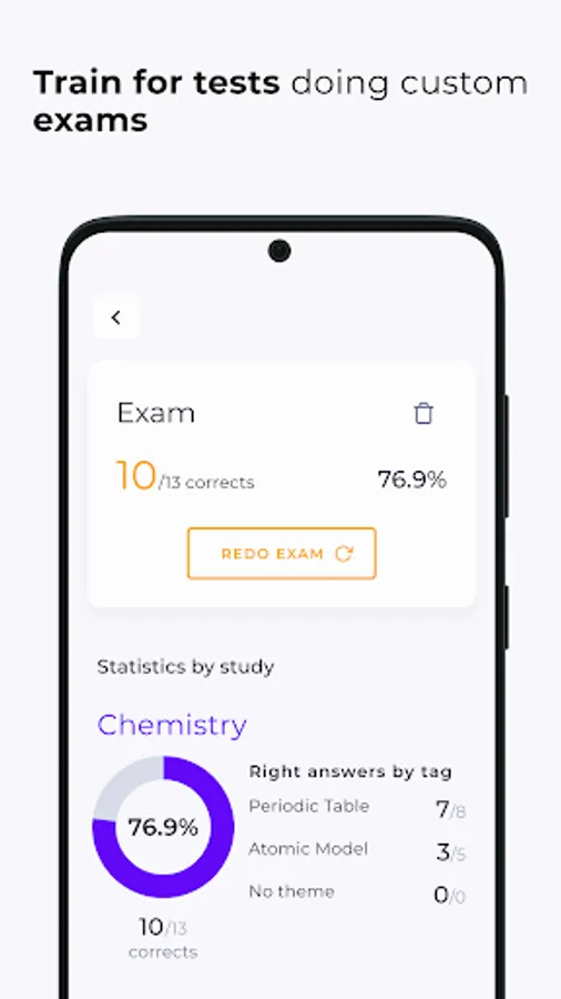 • Make custom exams according to your studies and tags and get detailed statistics of your learning
