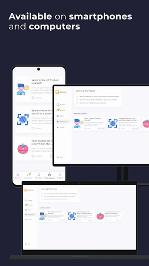 Revise helps you in your studies through Smart Review of question and answer cards (flashcards). Just create the flashcards as you are studying and when you are about to forget what you have learned we will let you know to review it, so that your learning will never be forgotten.