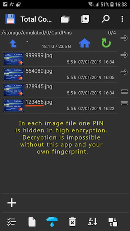 The app needs the right to write photos, media and files. At this location, the encrypted graphics are stored with the PIN. You are thus freely accessible. However, strangers can not do anything with these files.