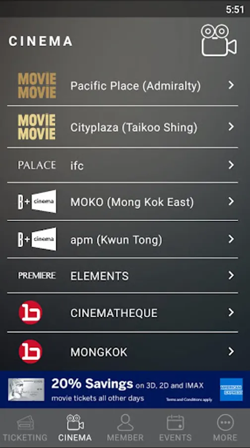 • Provide various ticket discounts, including Children, Student and Senior ticket discount, bc VIP membership discount, MOViE MOViE membership discount, American Express discounts and Friday Buy one Get one Free offer