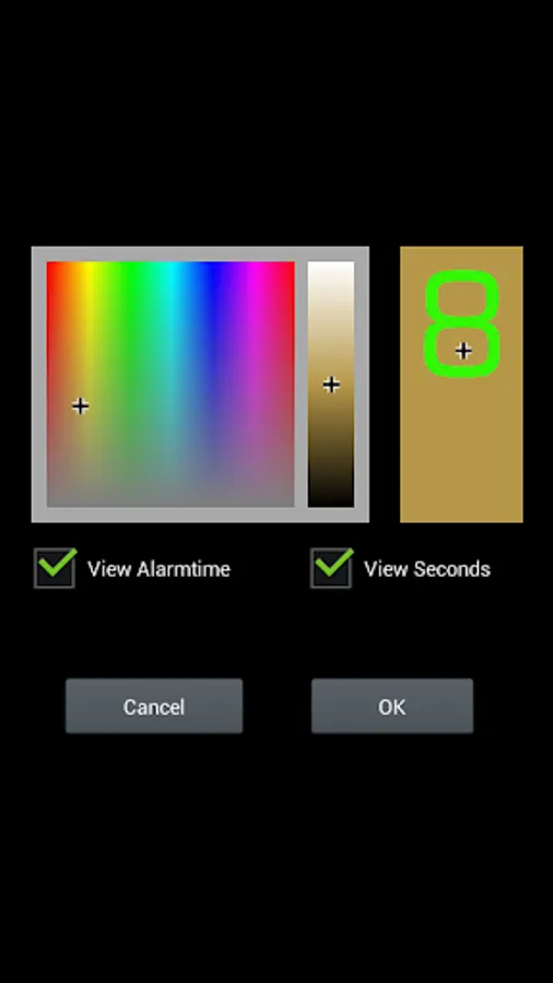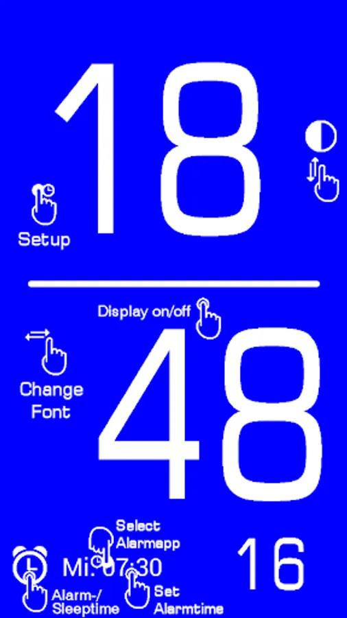 The selection of the change in color (font / background) is made by tapping the large eight or the color field underneath
