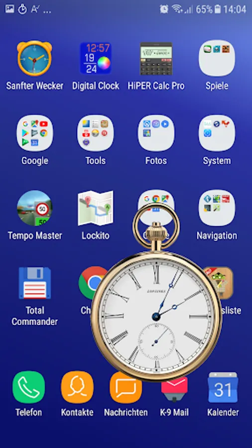The setup menu can be called from the status bar or with double click on the clock. In this menu the graphics can be selected. In addition, the different zoom values can be adjusted with a slider. This is especially useful for a very small representation of the clock. Then the adjustment with two fingers does not work anymore.