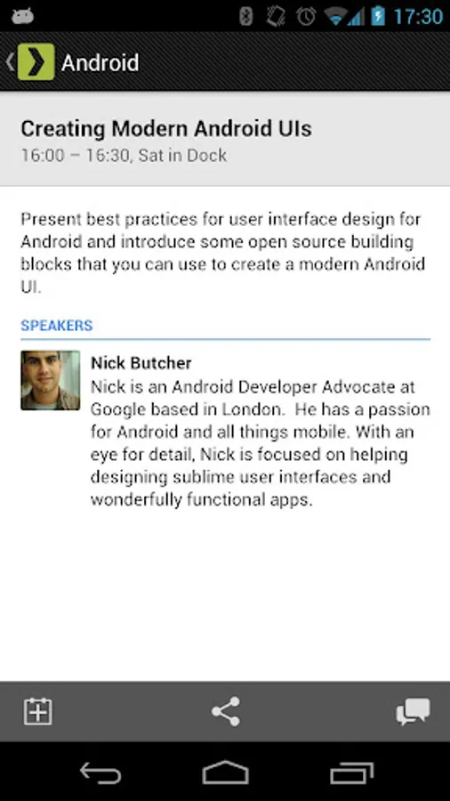 * View detailed session, code lab, and speaker information, including speaker bios, photos, and Google+ profiles