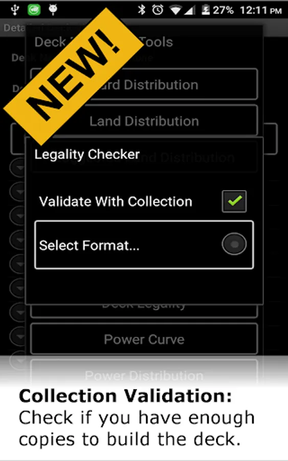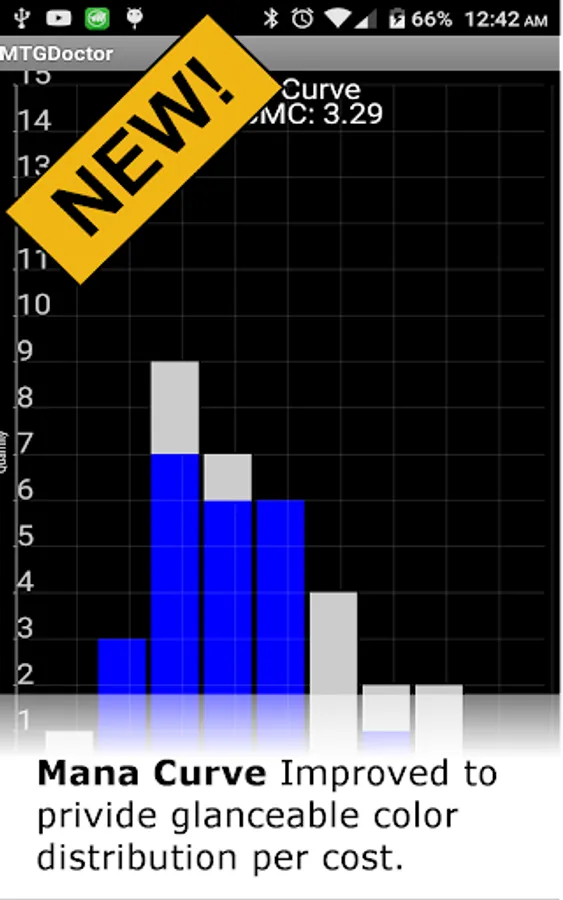 On Long Click/Tap on each individual bar of the Mana Curve, Power Curve, and Toughness Curve will allow you to view all the cards that fall in each category.During Search, Card Edit, Add Card and Draw Simulation will allow you to access the Gatherer site from Wizards of the Coast.