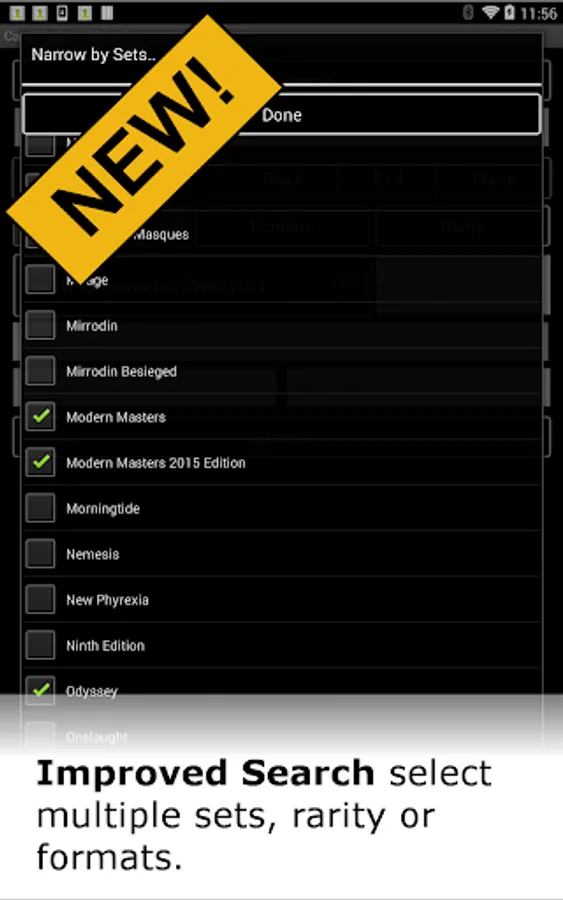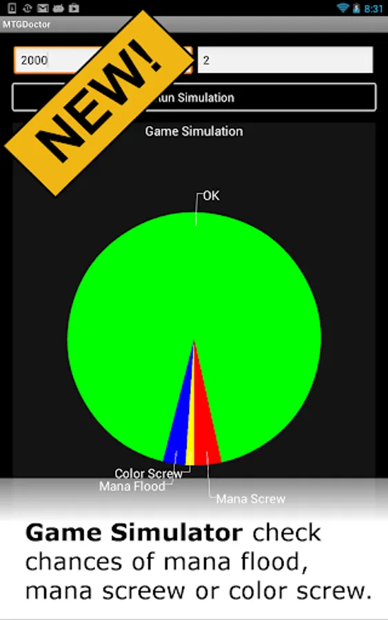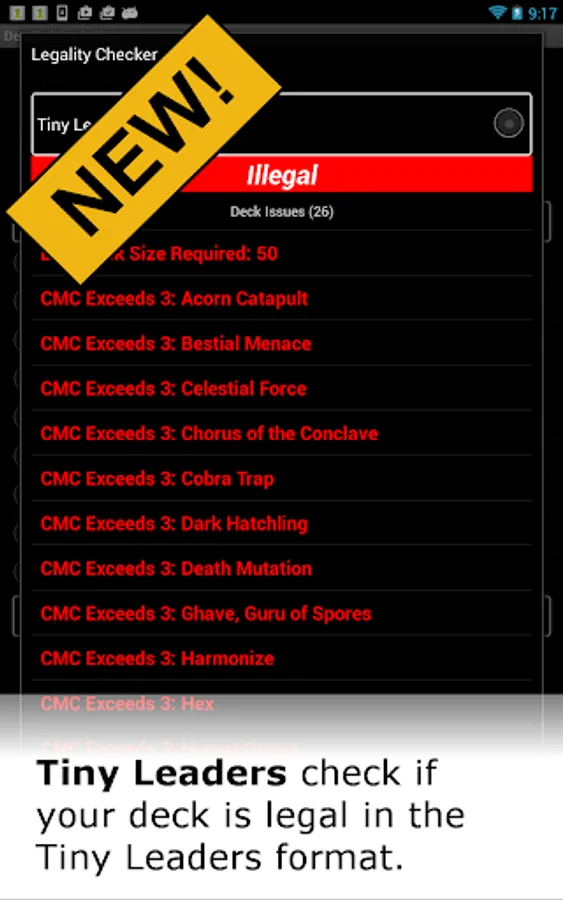 Save Decks to SD: Save your decks to the SD card, to upload into MTGO or send to your friends. On Long Click, send your deck out to your friends via email.