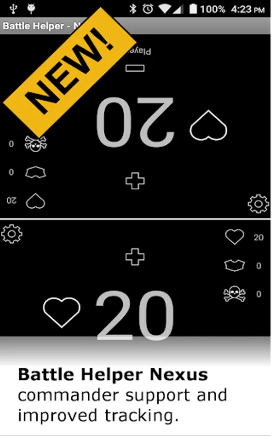 Battler Helper - Neo: Life counters, roll a die, flip a coin. All at your fingertips with the Battle Helper. Keep track of life planeswalkers and poison.