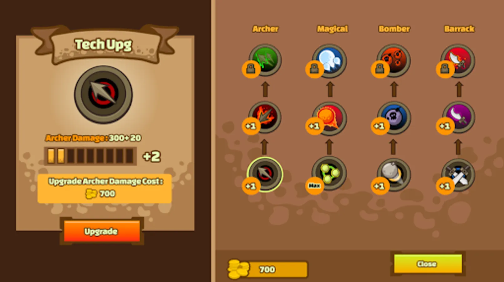 Upgrade your defenses to many levels - and gain power against powerful monsters.