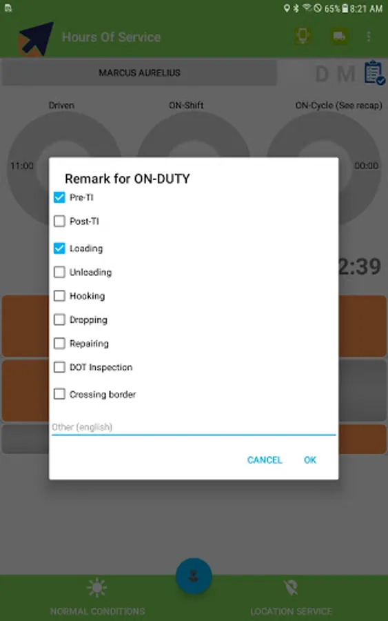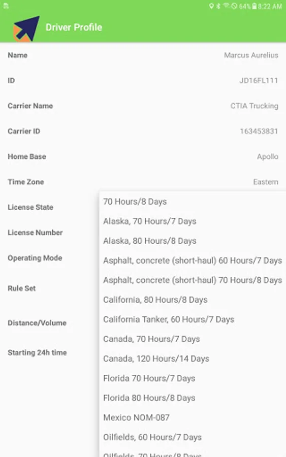 FMCSA-compliant app to record driver duty status and meet the following regulations: