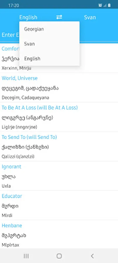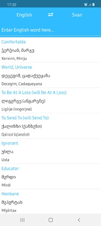 Translate words in Georgian, Svan and English