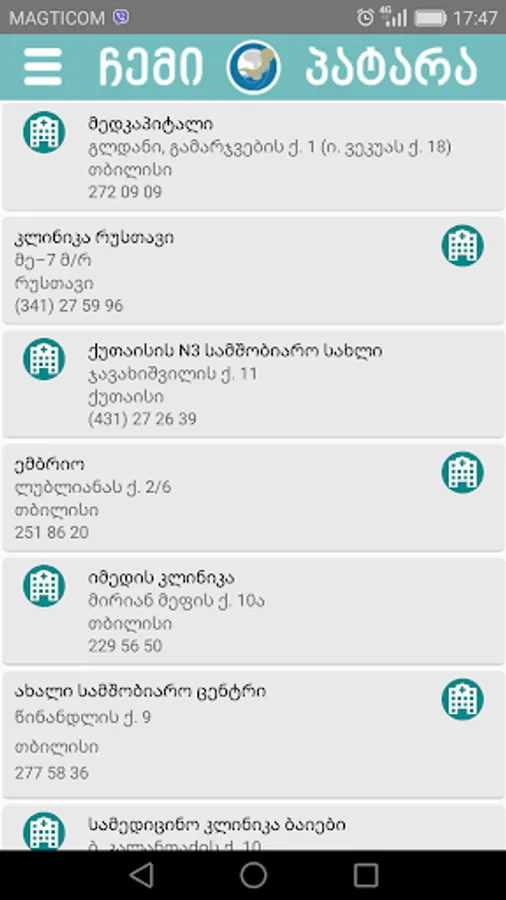 აპლიკაცია მომზადებულია www.medgeo.net საფუძველზე