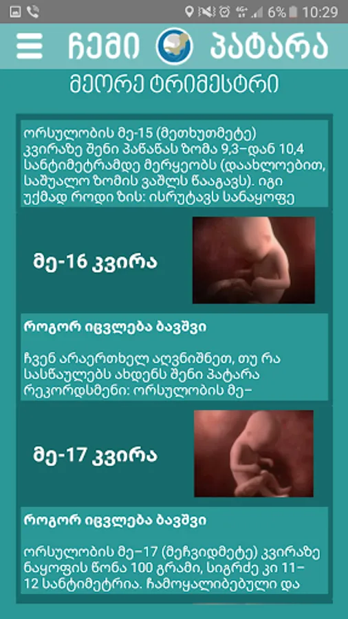 პროგრამა: ჩემი პატარა წარმოადგენს მომავალი დედებისთვის დამხმარე აპლიკაციას, რომელიც დაეხმარებათ იცოდეთ მეტი ბავშვის ემბრიონის ზრდის შესახებ. სამედიცინო დაწესებულებების და ქალთა კონსულტაციების შესახებ ორსულობის დროს, გამოთვალონ სავარაუდო მშობიარობის თარიღი. ასევე მიიღონ იფორმაცია 2 წლამდე ასაკის ბავშვის განვითარებაზე.