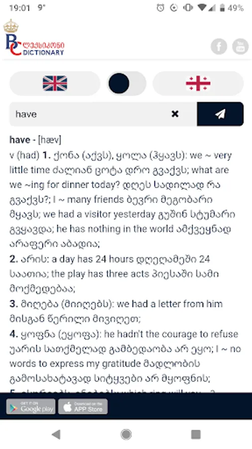 The most comprehensive, reliable and accurate English <> Georgian, Georgian<> English dictionary.