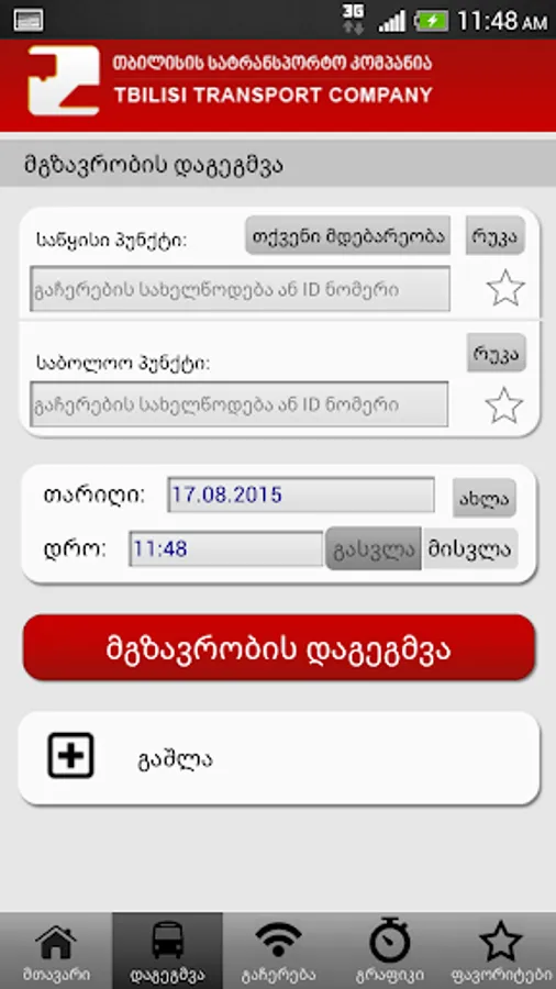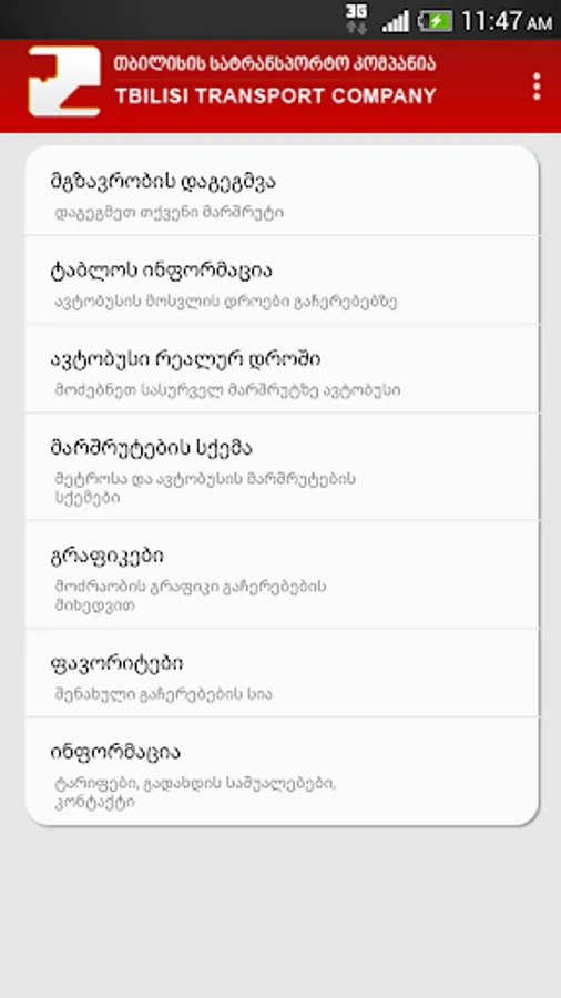 Keywords: Tbilisi, metro, subway, underground, bus, public transport, transportation, transit, network map, realtime, live, journey planner