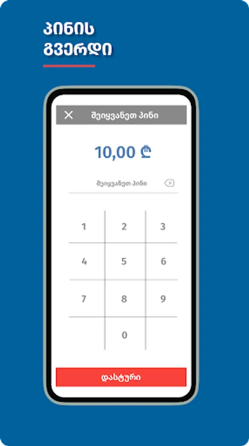 With PIN APP, user will be able to enter PIN (4-digit number unique) on high volume transactions.