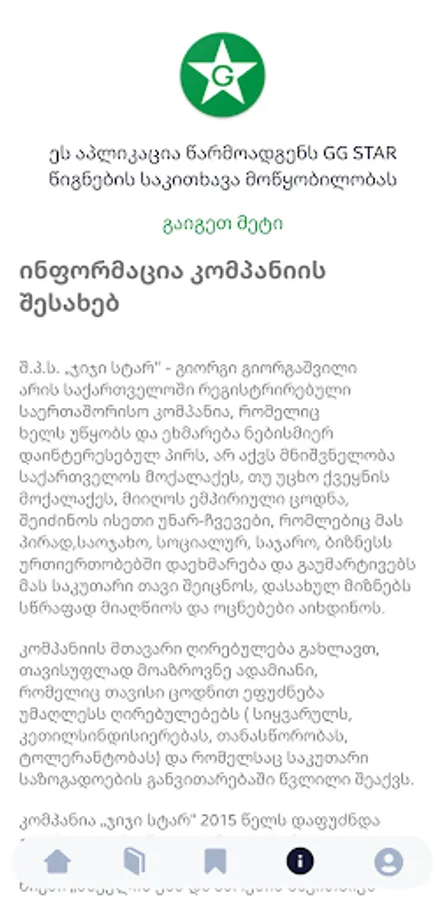 აპლიკაცია წარმოადგენს GG STAR წიგნების საკითხავ მოწყობილობას