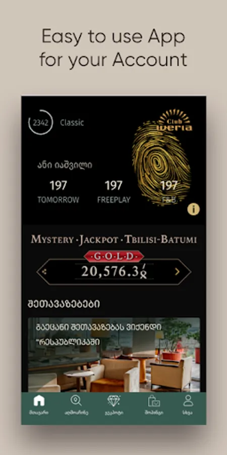 Experience the privilege by becoming Club Iveria App user. Download our application and enjoy the benefit of receiving exclusive offers, making online reservations easily, controlling earning and expenditure process of your points to name a few.