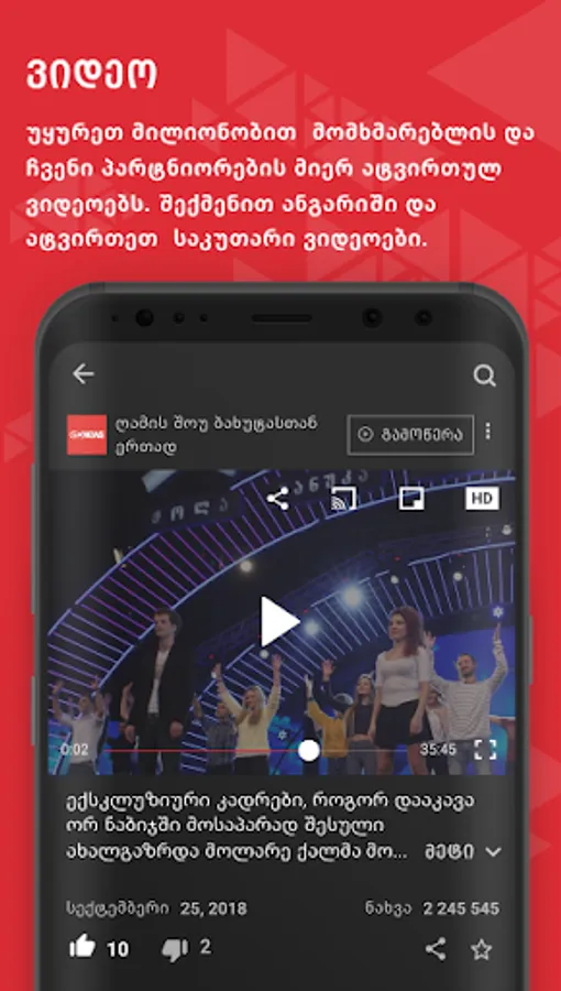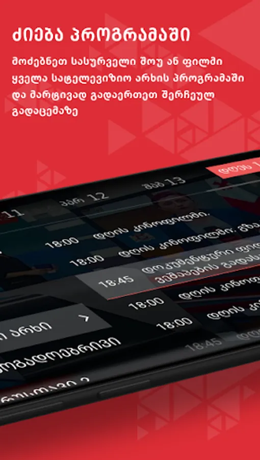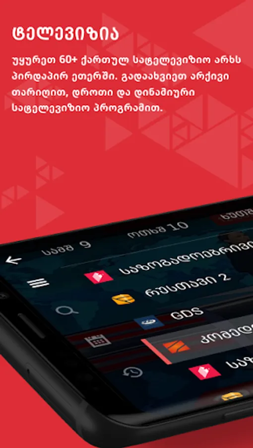 * TV: Pause Live TV and timeshift 70+ Georgian TV channels with an average of 2 month archive. Use an interactive programming guide to watch your favorite shows whenever you want or browse an archive using a calendar to jump to a particular date and time. Cast TV stream to your Chromecast and watch it on the big screen.