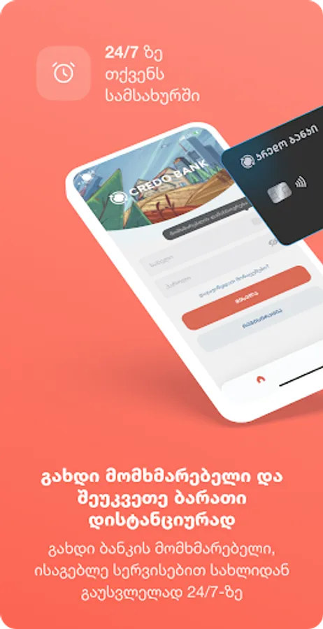 Mycredo - კრედო ბანკის მობილური აპლიკაცია ფიზიკური პირებისთვის, რომელიც მორგებულია მომხმარებლის ქცევასა და საჭიროებებს. მისი მარტივი ფუნქციონალი და ინტერფეისი იძლევა აპლიკაციის მაქსიმალურად კომფორტულად გამოიყენებისა და სერვისცენტრში ვიზიტის გარეშე სასურველი საბანკო ოპერაციის განხორციელების შესაძლებლობას.