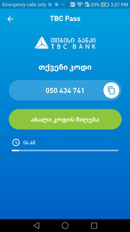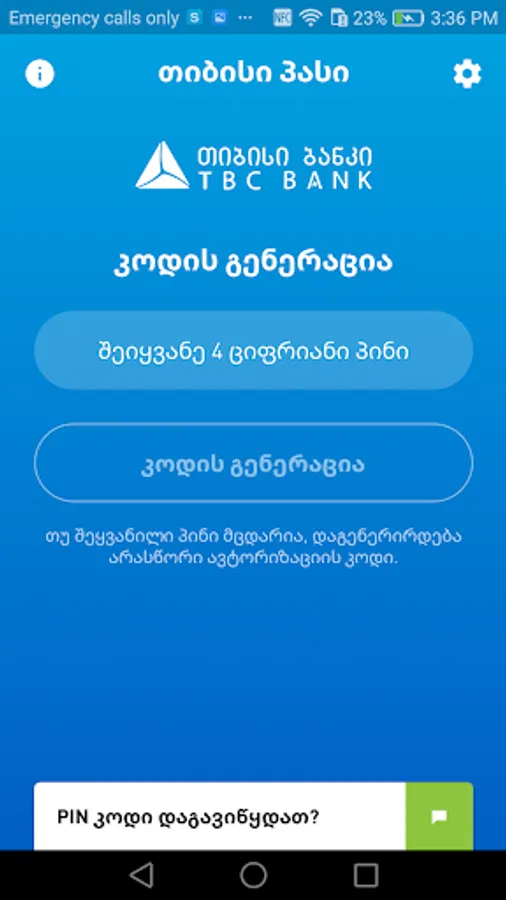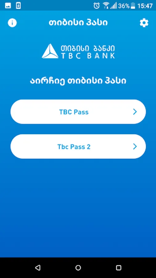 TBC Pass is an application updating old TBC Digipass, which generates onetime codes for authorizing Internet and Mobile Banking transactions.
